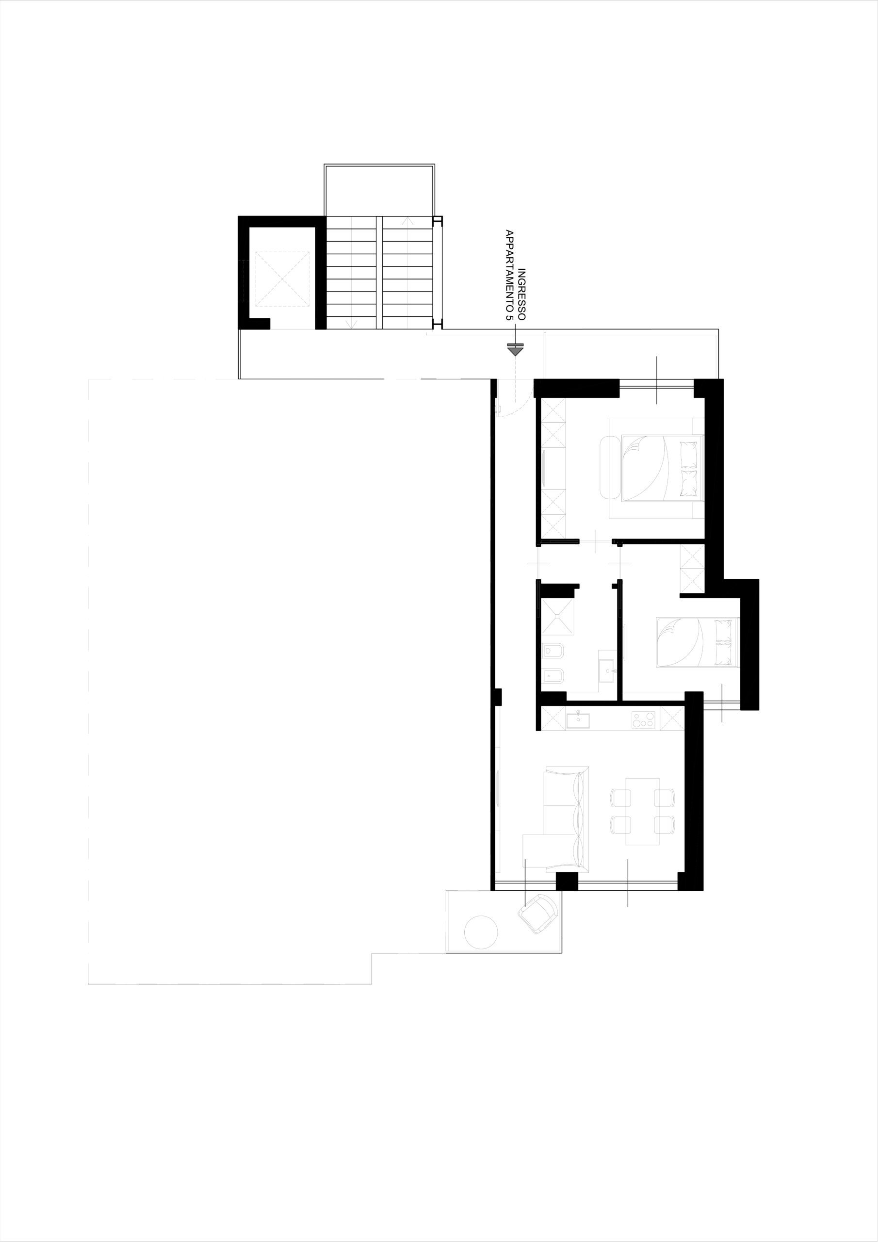 Proponiamo un appartamento composto da tre locali, composto da soggiorno con cucina a vista, due camere da letto, un bagno e un balcone.