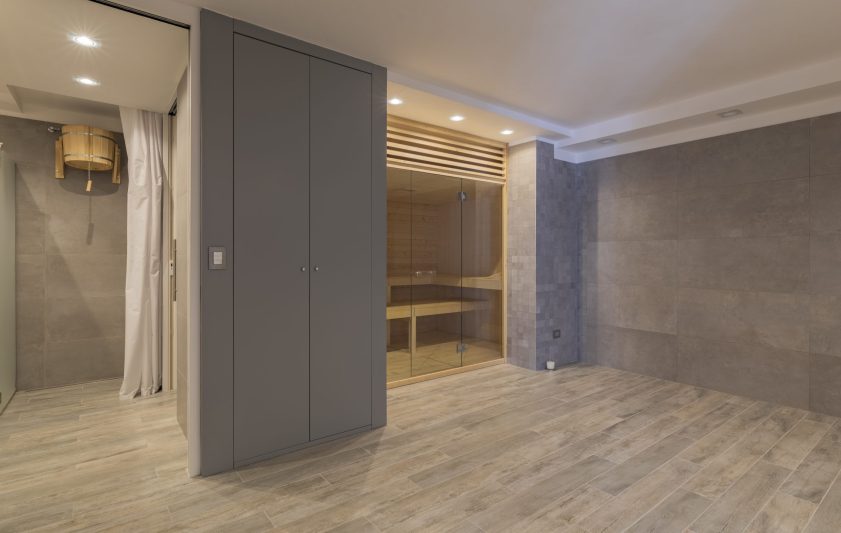 Sauna con bagno e zona relax